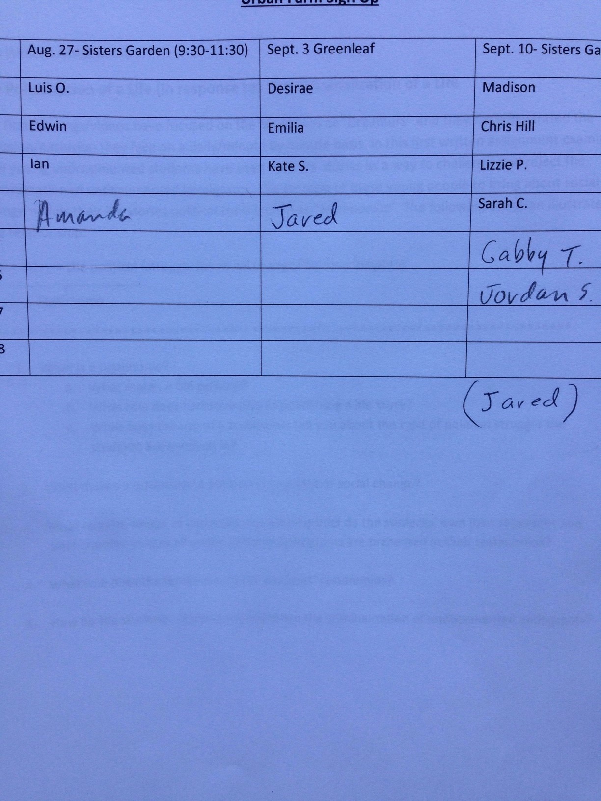 Urban Garden Sign Up